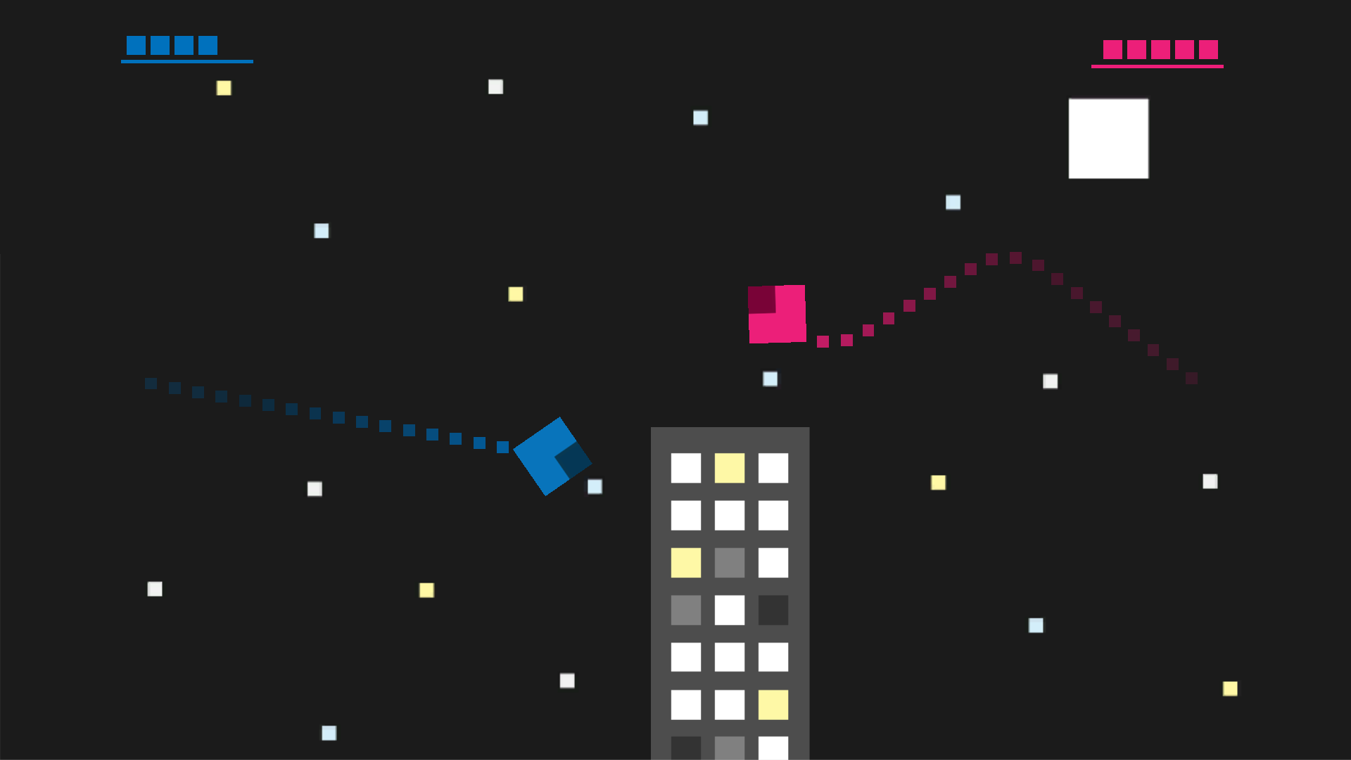 Our first full release is Pixel Slayer, a fast-paced multiplayer “1D” joust. Players spin and stab with the point of their Pixels to kill their opponent while dashing out of the way to avoid incoming attacks. The last player standing wins. Players can battle in 10 different levels, each with their own theme and unique mechanic.
